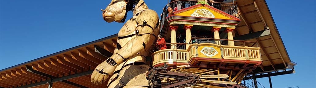 Loin du musée à la scénographie figée, plus proche du spectacle de rue que d’une exposition permanente, la visite de la Halle de La Machine vous invite à voyager à travers les contes et légendes de ces extraordinaires mécaniques. De la plus petite tenant dans la main à la plus grande pouvant peser plusieurs tonnes, chaque machine raconte une histoire, émeut par son mouvement et son identité.